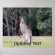 Una foto de recuerdo perfecta de Australia, esta imagen muestra a una madre, o Mamá, canguro de pie en posición vertical con su bebé Joey sacando la cabeza de su bolsa mientras se paran y pastan en el césped frente a los árboles en el fondo. Añade un nombre opcional, fecha de vacaciones o mensaje para crear tu propia fotografía de recuerdo australiana. Otro diseño exclusivo original de Sonja Quidama Image Code: kangaroo