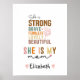 Un diseño moderno y bonito de "Ella es fuerte" sobre un fondo blanco.