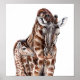 Póster Madre jirafa con bebé jirafa