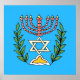Esta imagen fue adaptada de una antigua teja judía persa y cuenta con una menorah con un Magen David (Estrella de David) enmarcado por ramas de olivo. Se han conservado las imperfecciones de la imagen original pintada a mano.