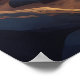 Esta obra de arte digital captura una escena impresionante y surrealista, donde una ola masiva y rizada domina el primer plano, su agua azul translúcida formando un túnel perfecto. A través de la ola, el sol poniente proyecta un cálido resplandor dorado, mientras que una luna llena cuelga en el cielo, creando un contraste impresionante de luz. La playa está bordeada de palmeras, cuyas siluetas añaden a la atmósfera tropical. El cielo está pintado en suaves tonos de rosa, naranja y púrpura, reflejándose en el agua y la arena. La interacción de los elementos naturales - océano, cielo y tierra - evoca una sensación de asombro, tranquilidad y la belleza de la naturaleza. Esta imagen captura la armonía del día y la noche, la tierra y el mar, en un entorno onírico y mágico.
