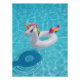A playful and vibrant photograph capturing a white inflatable unicorn ring floating serenely in a clear blue swimming pool. The rainbow mane and tail add a burst of cheerful color against the dappled sunlight and tile texture. This artwork perfectly embodies a carefree summer vacation vibe and a sense of whimsical fun. It's the ideal piece to brighten a bathroom, laundry room, kid's space, or any area needing a pop of joy and color.