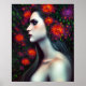 Fantasma mágica hermosa cara con flores púrpura verde rojo