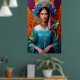 Póster Magnífica princesa asiática con pájaros
