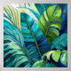 Contenidos generativos, espléndidos, botánicos, monstera triptch "Monstera, Banana, hojas, pintura al óleo", "Arte, Verde azulado, verde, azul, amarillo", "Tropical, botánico, natural, Bella Artes", "Decoración de paredes, lujuria, vibrante, follaje" Colorido de las obras.