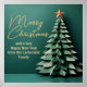 Magnífico guión dorado en un elegante poster verde con un árbol de Navidad que da la única ilusión de ver el 3D completo con una estrella del bonito en la cima de esta decoración de fiestas de vacaciones. Un moderno garabato manuscrito encima de tu mensaje personalizado para una impresión de bienvenida de moda.