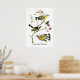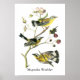 Este cuadro es de un trío de bélicos sentados en un árbol floreciente. Este bambalino tiene un cuerpo amarillo con alas y cola blancas y negras. La cabeza es blanca con un parche de mejilla negra en los machos.
