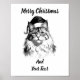 Festive Maine Coon Christmas poster featuring a cute black and white ink sketch with a Santa hat. Personalize the text for unique holiday wall art. A perfect Xmas gift for cat lovers. High-quality semi-gloss print or select Instant Download for digital use.
