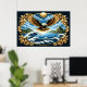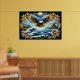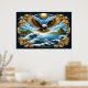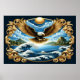 Un cuadro de un águila que se alza con gracia sobre un cuerpo de agua que brilla, capturado en aceites ricos con detalles intrincados de oro y mármol, que simbolizan la fuerza, el patriotismo y la libertad.