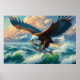Póster Majestic Eagle Swooping Down to Catch Fish 20x16