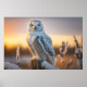 Póster Majestic Snowy Owl Perched on a Tree Branch