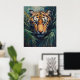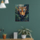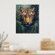 This artwork captures the powerful presence of a tiger hidden within dense jungle foliage. The vivid green eyes and detailed fur patterns highlight the animal’s strength and mystery, while the brushstroke style adds a sense of movement and life. It represents the balance between beauty and danger in nature, reminding us of the wild spirit that thrives beyond human reach.