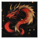 Póster Majestuoso Arte Dragón Chino Rojo y Oro
