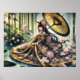 Póster Majestuoso Kimono Floral Bajo Canopa De Bambú