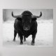 Póster Majestuoso toro negro en campo de nieve de inviern