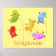 Estas 5 medusas se están divirtiendo mucho. Dibujado en un bonito estilo de ilustracion personalizado sobre un fondo polka amarillo claro.