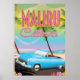 Malibu California poster de viajes de vintage de un clásico auto viejo cerca de una hermosa playa.
