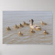 Un pato de mallard (Anas platyrhynchos) con sus patios en el Parque Rural The Rising Sun, Newcastle upon Tyne.