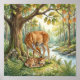 Una dulce y suave ilustración que presenta a una cierva y su cervatillo, capturando un momento de paz en el acogedor mundo boscoso de Ivory Nest.