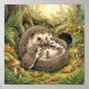 Una dulce y delicada ilustración que presenta a una mamá erizo y sus bebés, capturando un momento de paz en el acogedor mundo del bosque de Ivory Nest.