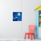 Arte de pared de lobos. Una mamá lobo y un bebé lobo gritando en la luna llena en una fría noche de invierno parados en un acantilado.