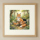 Una dulce y suave ilustración que presenta a una zorra mamá y sus bebés, capturando un momento de paz en el acogedor mundo boscoso de Ivory Nest.