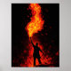 Póster Man Holding Massive Fire Torch Dramatic Silhouette