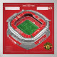 Muro de arte y decoración: Estilizado proyecto de Old Trafford con acentos rojos y características etiquetadas.