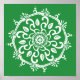 Esta mandala blanca se sienta sobre un fondo verde. Los colores son muy relajantes y tranquilos. Parte de la colección Payon Mandala.