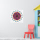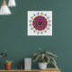 Este divertido poster cuenta con una mandala audaz en ricos tonos rosa, violeta, turquesa y amarillo dorado.