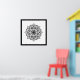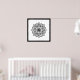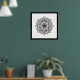 Ilustracion de mandala floral negra sobre fondo blanco con marco negro.