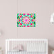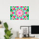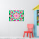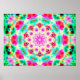 Un arte de Mandala rosa y verde brillante con muchas formas repetitivas y un patrón muy detallado.