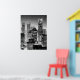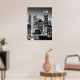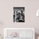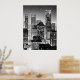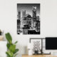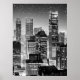 Poster en un ilustracion semi-abstracto del centro de Manhattan en blanco y negro, iluminado con luces de la ciudad, bajo un cielo estrellado a medianoche