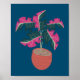 Póster Mano de la planta rosa de Monstera dibujada