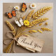 Mano que agradece flores silvestres dibujadas, tallos de trigo y mariposas acuarela