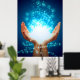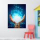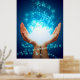 Póster Manos curativas sobre fondo verde, reiki, chakra