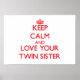 Utilice la herramienta de búsqueda de mi tienda para encontrar otros artículos de Twin Sister. Mantén la calma y ama tus productos Twin Sister disponibles en camisetas, sudaderas, camisetas infantiles, equipos para bebés, pegatinas, imanes y mucho más ropa de hermana gemela completamente personalizable a tus especificaciones. Si te gusta lo que ves, por favor, enlaza a mi tienda (www.zazzle.com/familygiftshirts) o envía un correo electrónico a un amigo.