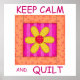 Muestra tu amor por el tejido con este divertido y colorido bloque de colchas que proclama "Mantener la calma y la frescura". Este diseño es de tejido original con un mosaico de flores de colores. La palabra "tejido" es fácil de cambiar a otra palabra de su elección. El edredón está decorado en tonos vivos y dinámicos de naranja, amarillo y rosa para una bonita paleta de colores. Personalizable completo para personalizar. El arte de la caldera es arte original de la diseñadora de tejidos y tejidos Phyllis Dobbs. Este arte está disponible en otros productos y en varios colores y también está disponible en otros productos de Keep Calm con diferentes pinturas de tela.
