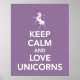 Póster Mantener la calma y amar a las Unicornios imprimir