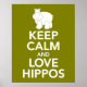 Póster Mantener la calma y amar a los hipopótamos impreso