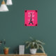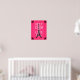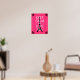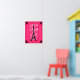 Una silueta negra de la Torre Eiffel está sobre un fondo rayado rosado caliente. La frase "mantengan la calma y amen a París" tiene un tipo de letra blanco opuesto.