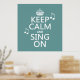 Se lee Keep Calm and Sing On, al estilo del clásico poster de calma. Hay notas musicales flotando al lado de las palabras. Es uno de mis diseños más populares, y popular entre todos los que aman cantar. Puede cambiar el color de fondo muy fácilmente, sólo pulse personalizar. Si quieres cualquier otro cambio - o ver el diseño en un producto diferente - o si solo tienes alguna pregunta, por favor ponte en contacto a través de mi tienda y te ayudaré de cualquier manera que pueda. Muchas gracias por mirar.