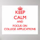 Utilice la herramienta de búsqueda de mi tienda para encontrar otros artículos de aplicaciones de universidad. Mantenga la calma y concéntrate en los productos de aplicaciones de la universidad disponibles en camisetas, sudaderas, camisetas infantiles, bebés, pegatinas, imanes y mucho más ropa de aplicaciones de la universidad personalizable completamente a sus especificaciones. Si te gusta lo que ves, por favor, enlaza a mi tienda (www.zazzle.com/shirtsforall) o envía un correo electrónico a un amigo.