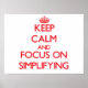 Utilice la herramienta de búsqueda de mi tienda para encontrar otro material de simplificación. Mantenga la calma y concéntrese en Simplificar los productos disponibles en camisetas, sudaderas, camisetas infantiles, personalizable infantil, pegatinas, imanes y mucho más Simplificación de la ropa a sus especificaciones. Si te gusta lo que ves, por favor, enlaza a mi tienda (www.zazzle.com/shirtsforall) o envía un correo electrónico a un amigo.