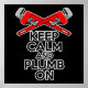 Humor de plomo con el meme de Internet "mantente tranquilo". Cruzada de las llaves de la tubería y el eslogan "Mantengan la calma y el plomo encendido"