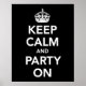 Póster Mantener la calma y el Fiesta al imprimir o al pos
