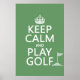 Este es el poster tradicional reformulado para "Mantener la calma y jugar al golf". ¡Excelentes palabras para vivir! Hay una pequeña bandera al lado de las palabras. Es un diseño popular, querido por los golfistas y los aficionados al golf. Disponible en una amplia gama de productos, hace grandes regalos y regalos para los aficionados al golf. Si desea cambiar el color de fondo pulse 'personalizar' y elija entre cualquier color bajo el sol. Si tiene alguna pregunta, o desea cambios o ver un diseño diferente, por favor contacte a través de mi tienda.