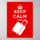 Versión divertida de Keep Calm and Carry on poster. Mantengan la calma y sigan con el humor con el equipaje de mano.