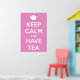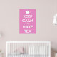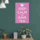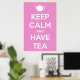 Un dulce giro en un poster motivacional británico vintage de la Segunda Guerra Mundial, de color rosa suave, con un texto blanco y nítido y tetera.