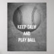 Esta cita tranquila poster tiene una pelota de béisbol en gris y blanco con texto mantener la calma y jugar a la pelota para la decoración de arte en la pared en casa o en la oficina.